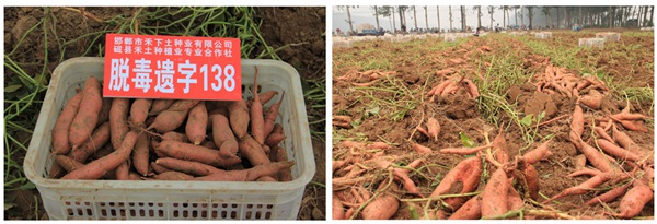 禾下土脫毒紅薯高產(chǎn)示范基地占地10000畝,以脫毒紅薯新品種、新技術(shù)試驗示范為核心,先后完成高起壟栽培、滴灌、機械化收獲等20余項技術(shù)成果轉換。通過(guò)組織開(kāi)展試驗示范、現場(chǎng)觀(guān)摩、技術(shù)指導、集中培訓等方式,完輻射新增脫毒紅薯種植面積4萬(wàn)畝,實(shí)現紅薯單產(chǎn)提高30%至60%,有效帶動(dòng)地方紅薯產(chǎn)業(yè)的健康發(fā)展。