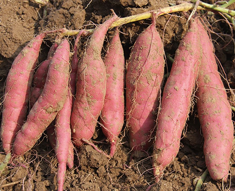 濟(jì)薯26① 特征特性:該品種屬于優(yōu)質(zhì)高端高產(chǎn)高效食用型紅薯新品種,紅皮黃瓤,結(jié)薯集中,單株結(jié)薯4—5個(gè);抗莖線(xiàn)蟲(chóng)病、根腐病、蔓割病和黑斑病,耐貯性好。特別適合烘烤和蒸煮。薯形長(zhǎng)紡錘形,結(jié)薯整齊集中,商品率高達(dá)95%。② 品種來(lái)源:該品種是山東省農(nóng)業(yè)科學(xué)院作物研究所選育,2014年3月通過(guò)國(guó)家鑒定。③ 產(chǎn)量表現(xiàn):春薯區(qū)平均單產(chǎn)3500公斤以上,夏薯區(qū)平均單產(chǎn)2500公斤以上。2012年國(guó)家北方區(qū)試鮮薯單產(chǎn)第一,2013年國(guó)家甘薯產(chǎn)業(yè)技術(shù)體系高產(chǎn)競(jìng)賽平均單產(chǎn)3700公斤。④ 栽培要點(diǎn):⑴培育壯苗,采用秋薯留種。⑵施足基肥,早追苗肥,重施"夾邊肥",后期看莖葉生長(zhǎng)情況酌情追施"裂縫肥"或根外追肥。⑶適期早插合理密植。春薯每畝植3000株,夏薯每畝植3500株⑷適應(yīng)性廣,耐旱耐澇耐肥,管理省工,莖節(jié)不定根少...